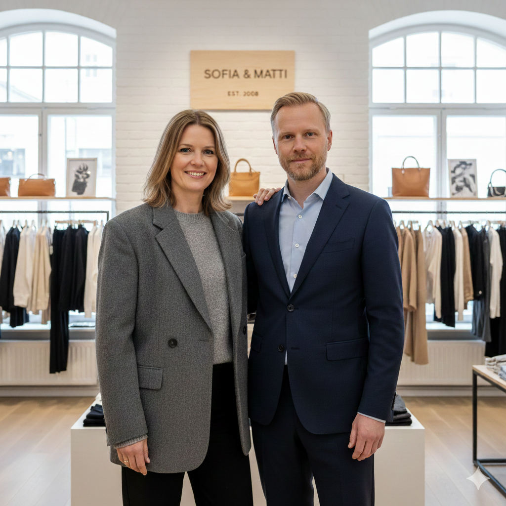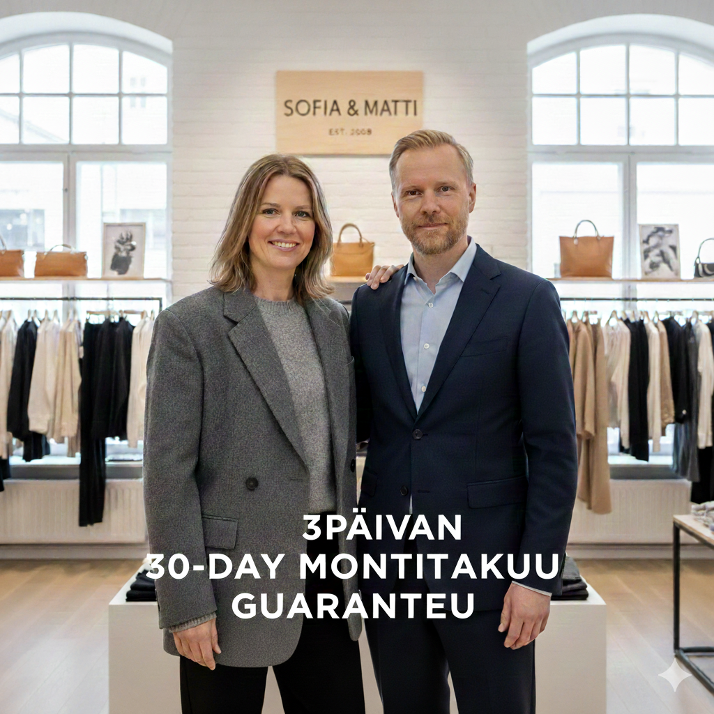 Hei, olemme Sofia ja Matti, sisarukset, jotka perustivat tämän kaupan jakamaan rakkautemme ajattomiin, kauniisti valmistettuihin vaatteisiin. Seitsemän vuotta sitten unelmoimme luomasta vaatteita, jotka auttaisivat ihmisiä tuntemaan itsensä varmoiksi ja erityisiksi joka päivä. Pienestä ideasta on kasvanut jotain todella merkittävää, kiitos yhteisömme upean tuen. Tämä matka ei olisi ollut mahdollinen ilman teitä. Kiitos, että olette osa tarinaamme ja juhlistatte tätä merkkipaalua kanssamme.